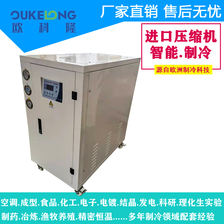 產(chǎn)品說(shuō)明:歐科隆高端5匹水冷箱式冷水機(jī)|應(yīng)用于高端制造,設(shè)計(jì)使用壽命15年