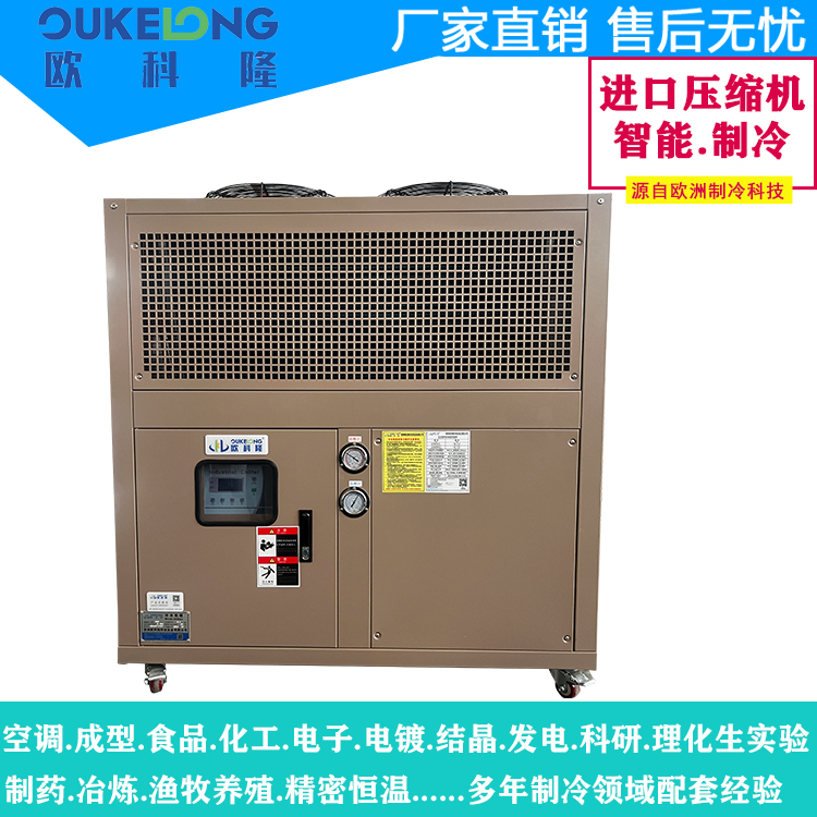 深圳歐科隆制冷自主設計研發(fā)生產的15HP風冷式冷水機是一款中高功率工業(yè)制冷設備,專為中型生產線和集中冷卻需求設計。該機型采用高效風冷散熱技術,免除冷卻塔配置,兼具大冷量輸出與便捷安裝特性,是制造業(yè)升級的理想溫控解決方案。