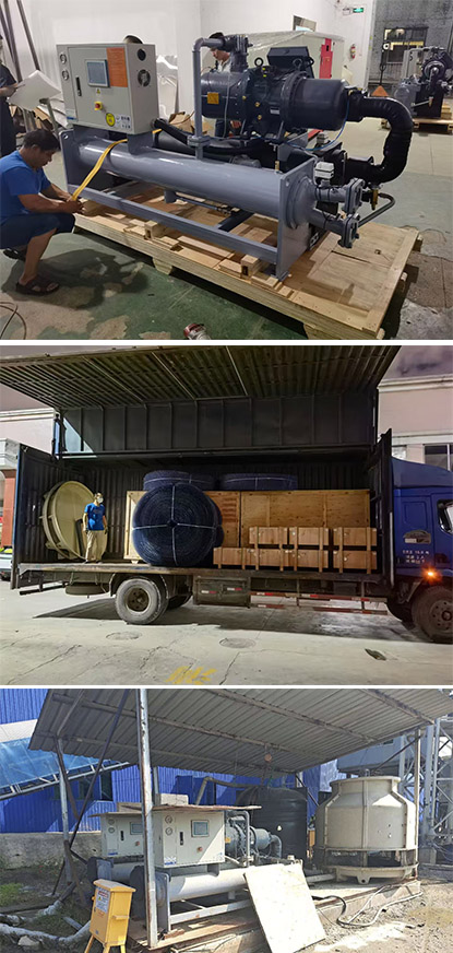 本案為出口到東南亞某國(guó),為注塑廠中央供水系統(tǒng)冷水機(jī)組案例。采用兩套60匹水冷螺桿式冷水機(jī)組,制作精良,品質(zhì)優(yōu)異深受用戶好評(píng)。